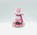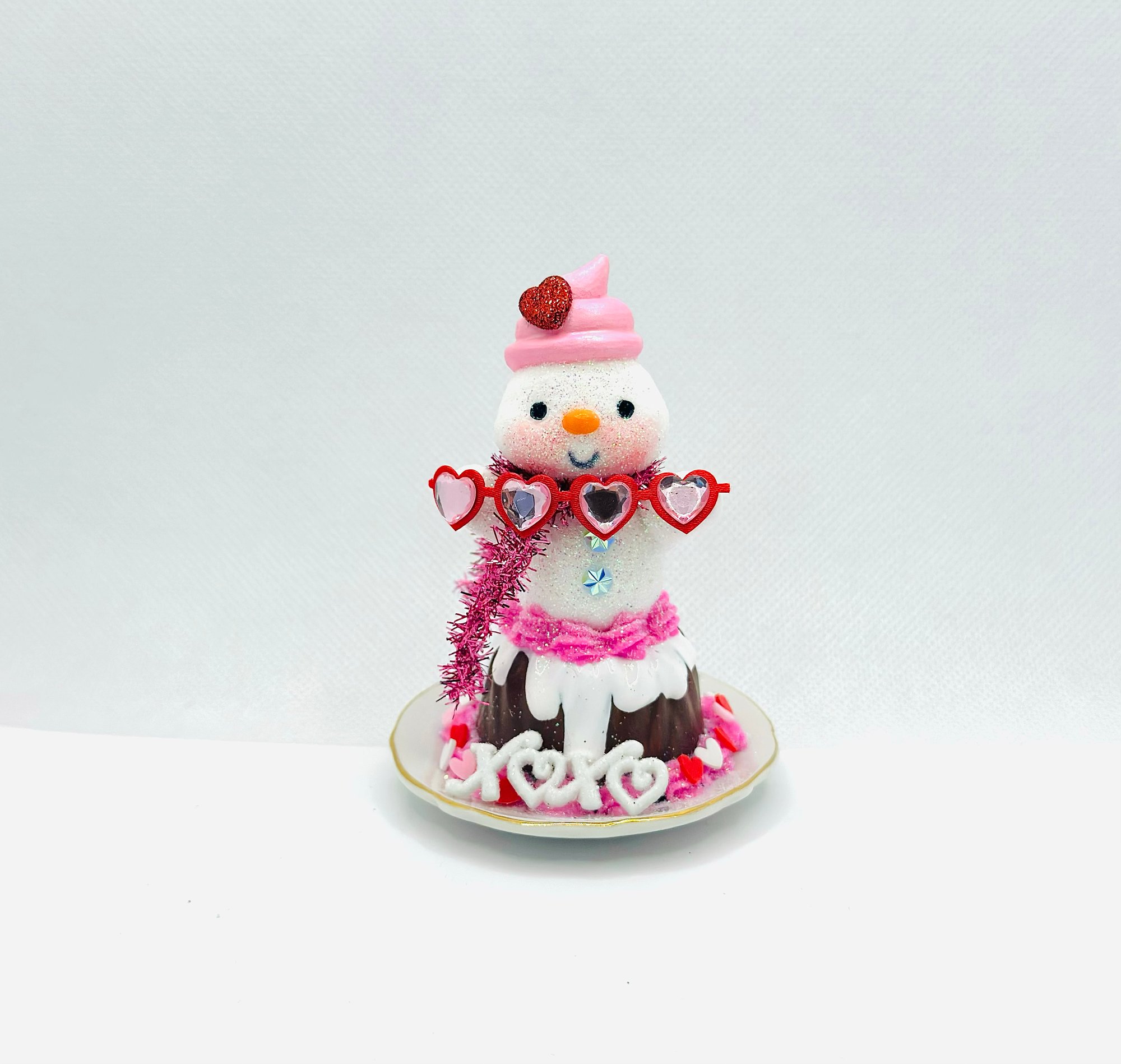 This cheery chocolate bundt cake snowman is celebrating Valentine’s Day with a festive heart garland and a XOXO sign. She’s signed and accompanied by a certificate of authenticity, making her an ideal gift or a delightful addition to your collection. Additionally, she’s conveniently packaged in a box, ensuring easy storage or gifting.