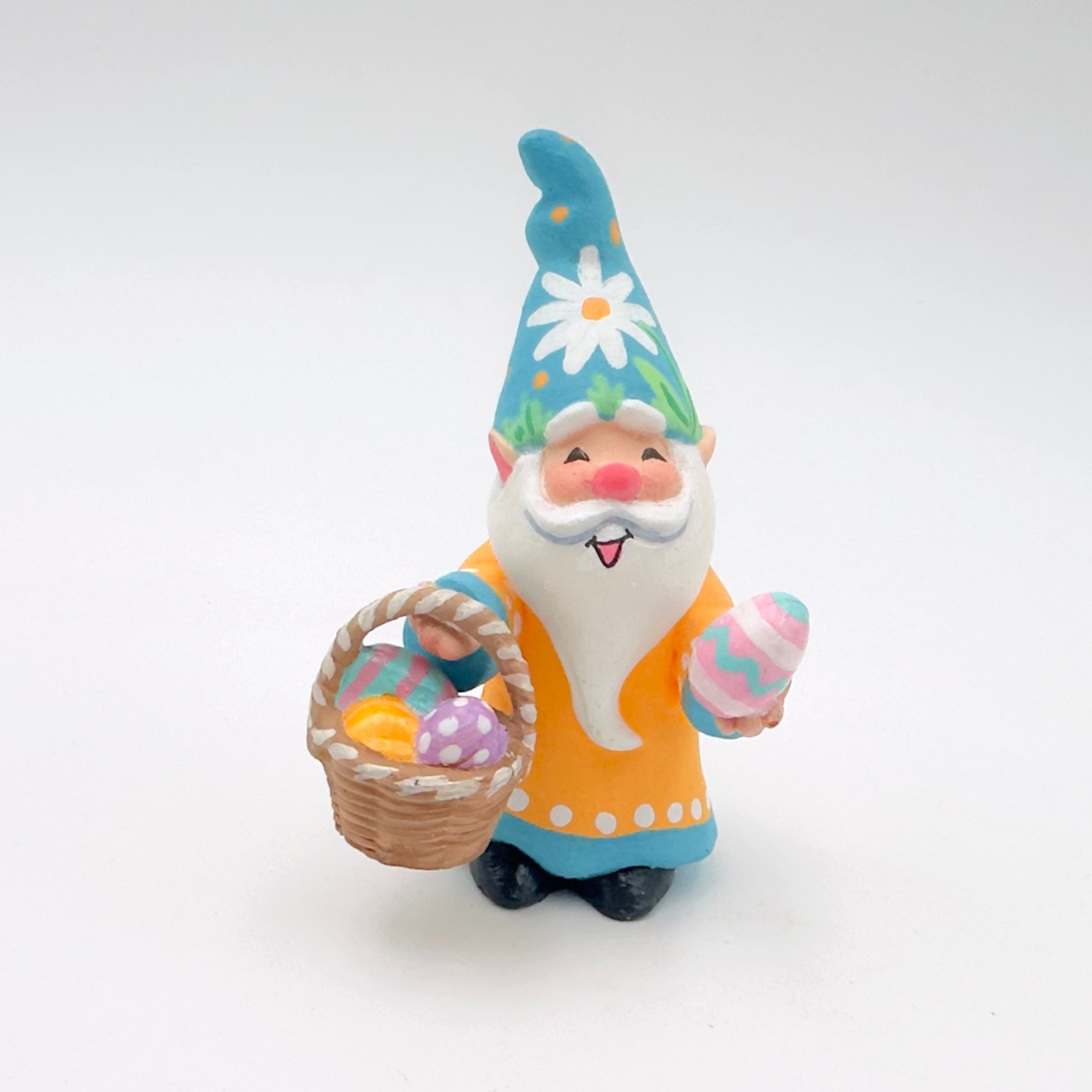 Meet Fergus Flowers, an enthusiastic Easter enthusiast who has been collecting eggs all over town. He’s thrilled to share his basket of unique eggs. Each figurine is signed by Tammy and accompanied by a certificate of authenticity. These charming creations are packaged in a box, making them perfect gifts or for safe storage.