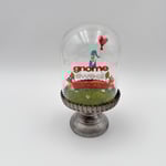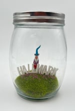 Choose from a collection of one of a kind Gnome terrariums. Each one has its own sweet little gnome tucked inside! The gnomes are handpainted paper clay sculptures and they are placed inside found object containers.