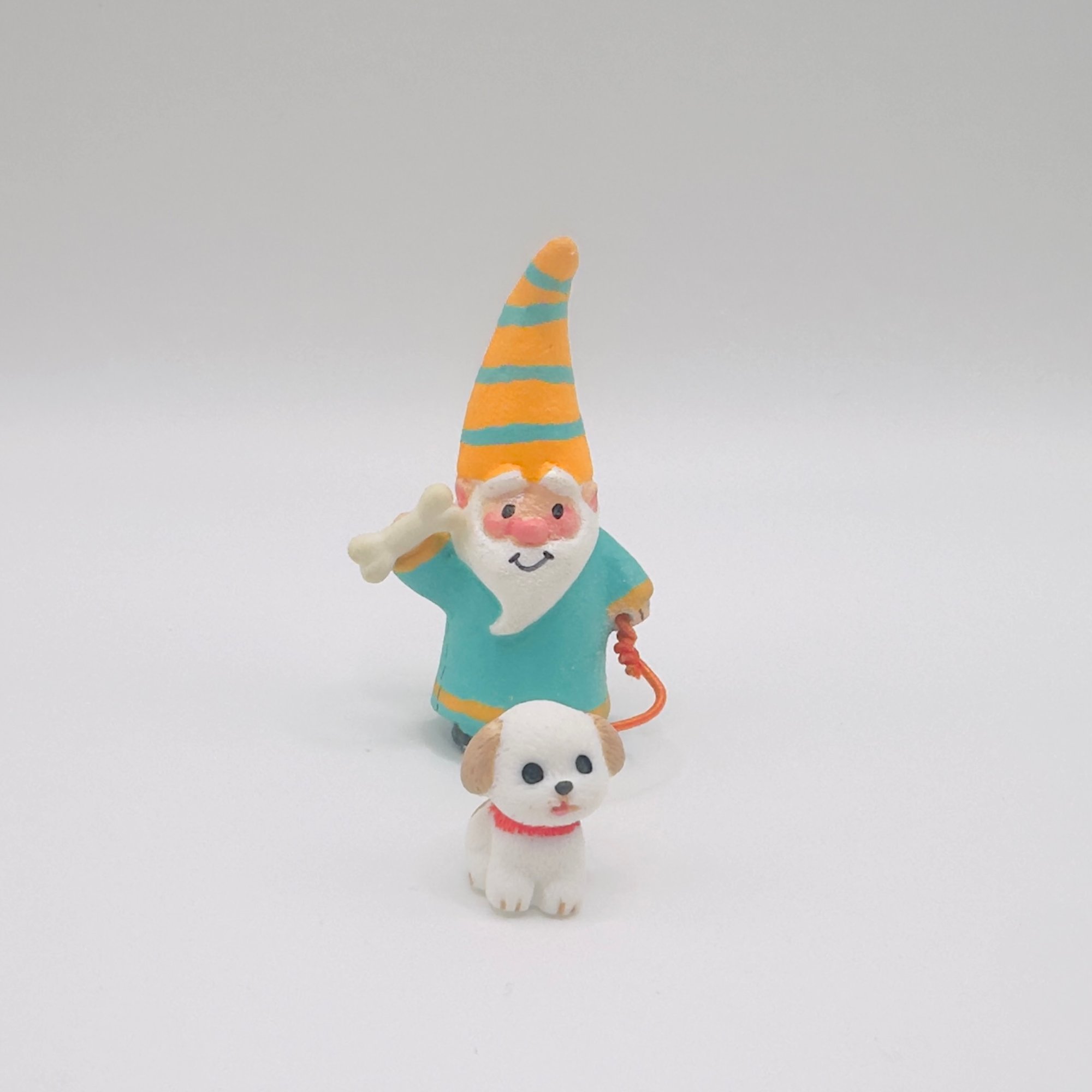 These whimsical gnomes are excited to have you join them on their walk with their adorable puppy dogs!