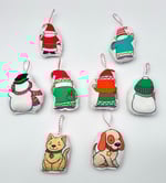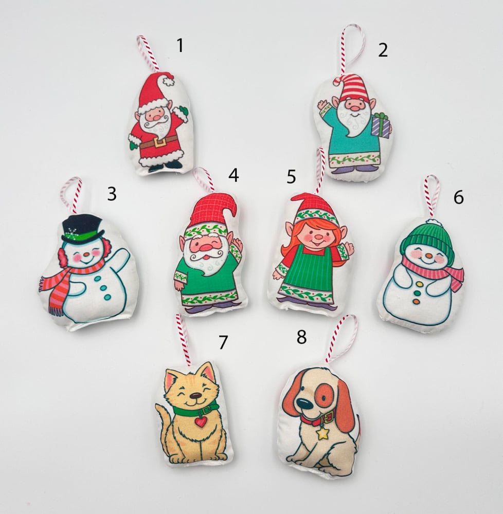 Decorate this holiday season with the hand made felt stocking by Tammy Haddix. Each stocking comes with a cute ornament showcasing the darling characters designed by Tammy. The ornament can be displayed in the attached pocket on the outside of the stocking. When ordering, please choose which ornament character you'd like to purchase.