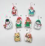 Decorate this holiday season with the hand made felt stocking by Tammy Haddix. Each stocking comes with a cute ornament showcasing the darling characters designed by Tammy. The ornament can be displayed in the attached pocket on the outside of the stocking. When ordering, please choose which ornament character you'd like to purchase.