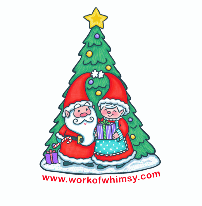 Santa and Mrs Claus celebrating around the Christmas Tree
