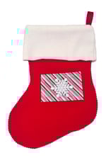 Red Stocking with Striped Pocket and Sewn Ornaments