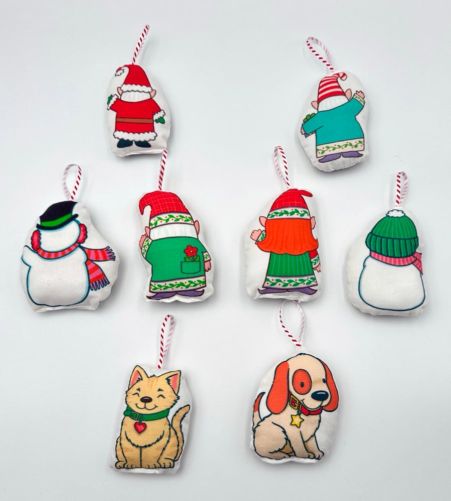 Decorate this holiday season with the hand made felt stocking by Tammy Haddix. Each stocking comes with a cute ornament showcasing the darling characters designed by Tammy. The ornament can be displayed in the attached pocket on the outside of the stocking. When ordering, please choose which ornament character you'd like to purchase.