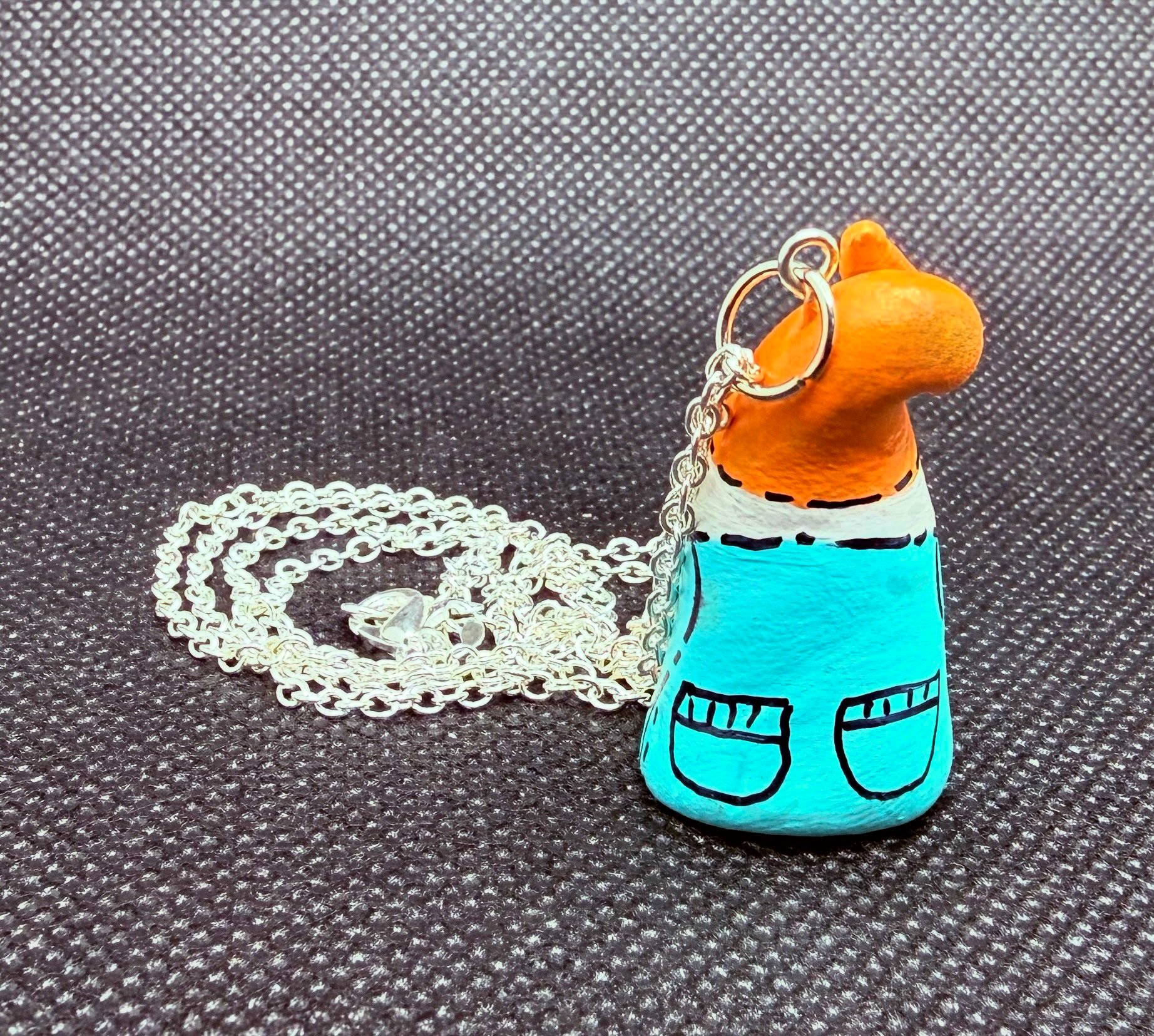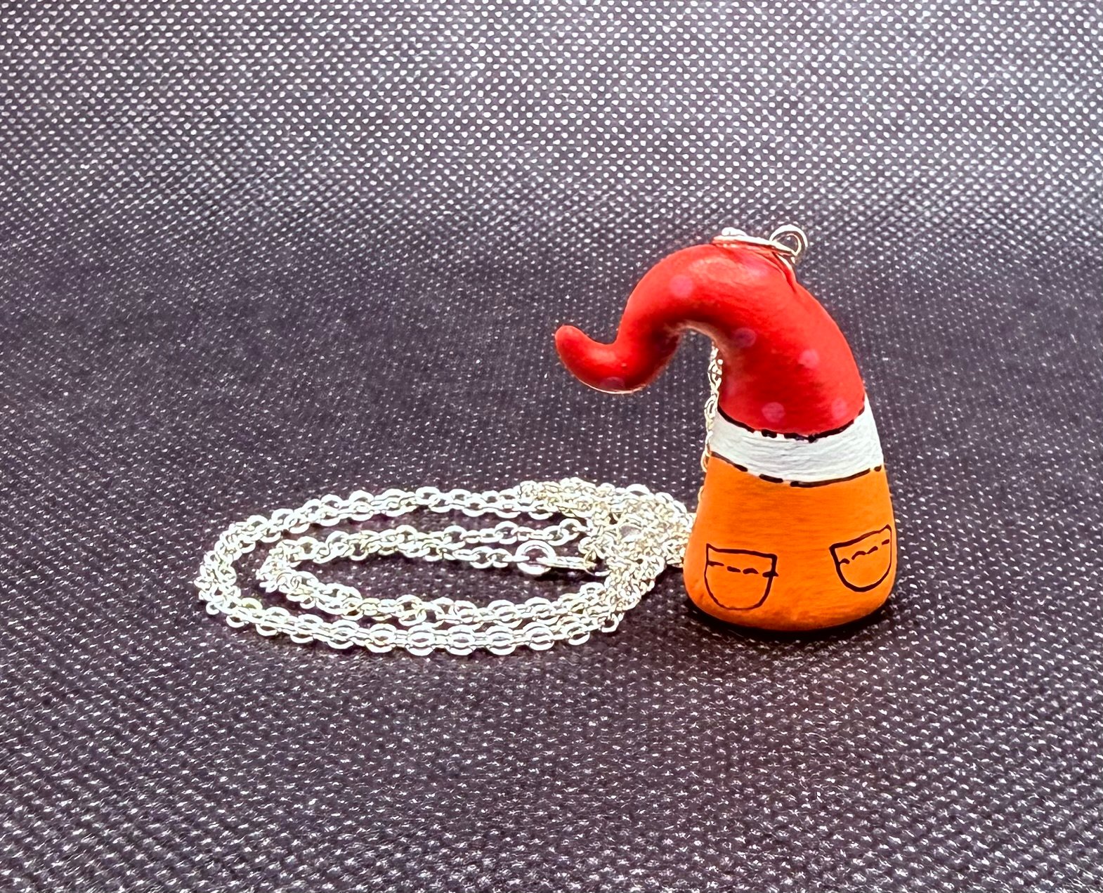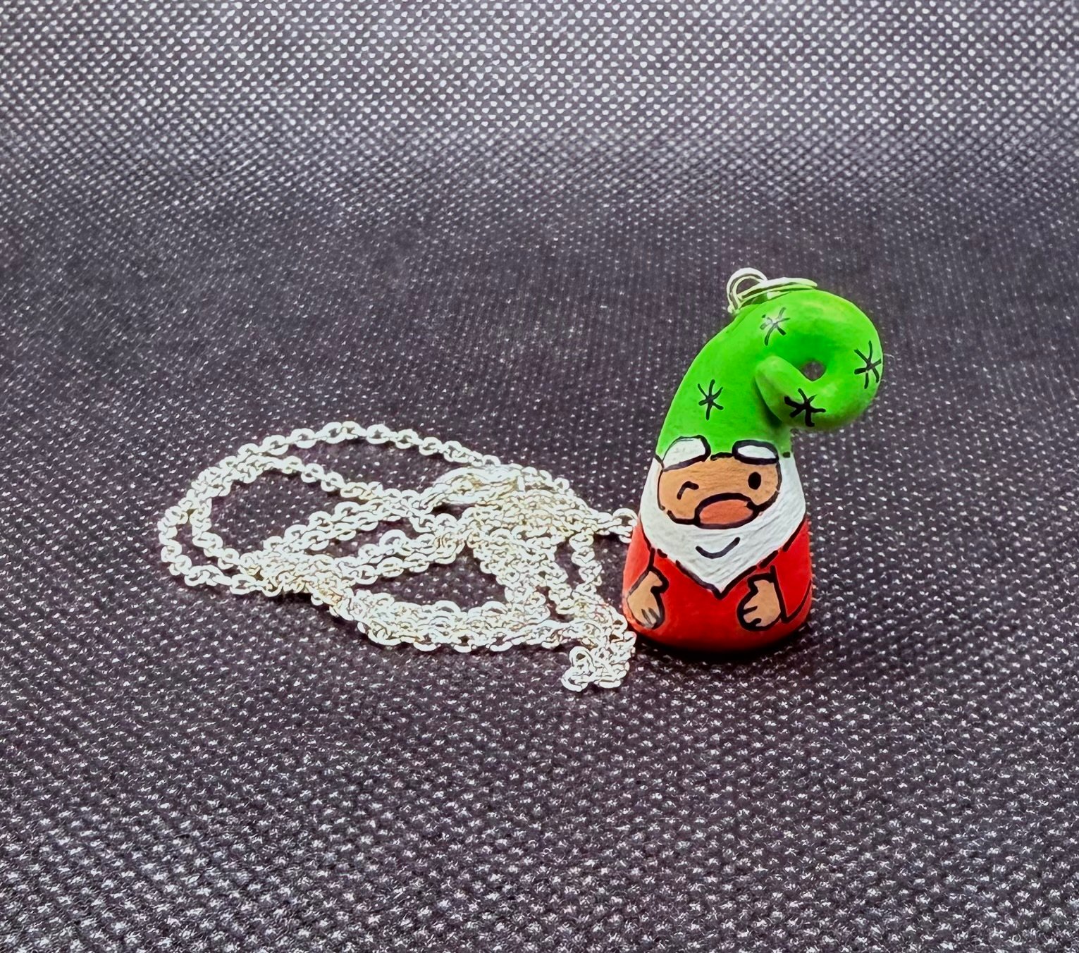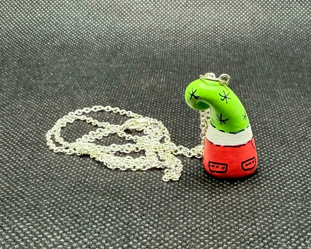 These charming gnome necklaces are a nostalgic throwback! I discovered them while organizing my studio. Each necklace is hand-sculpted from paper clay and hand-painted. They’re whimsically hung from a 22” sterling silver chain. I crafted these necklaces during my early days in the Work of Whimsy studio, and I thought it would be a fun addition to my collection to offer them for purchase. You’ll never be alone with one of these little guys!
