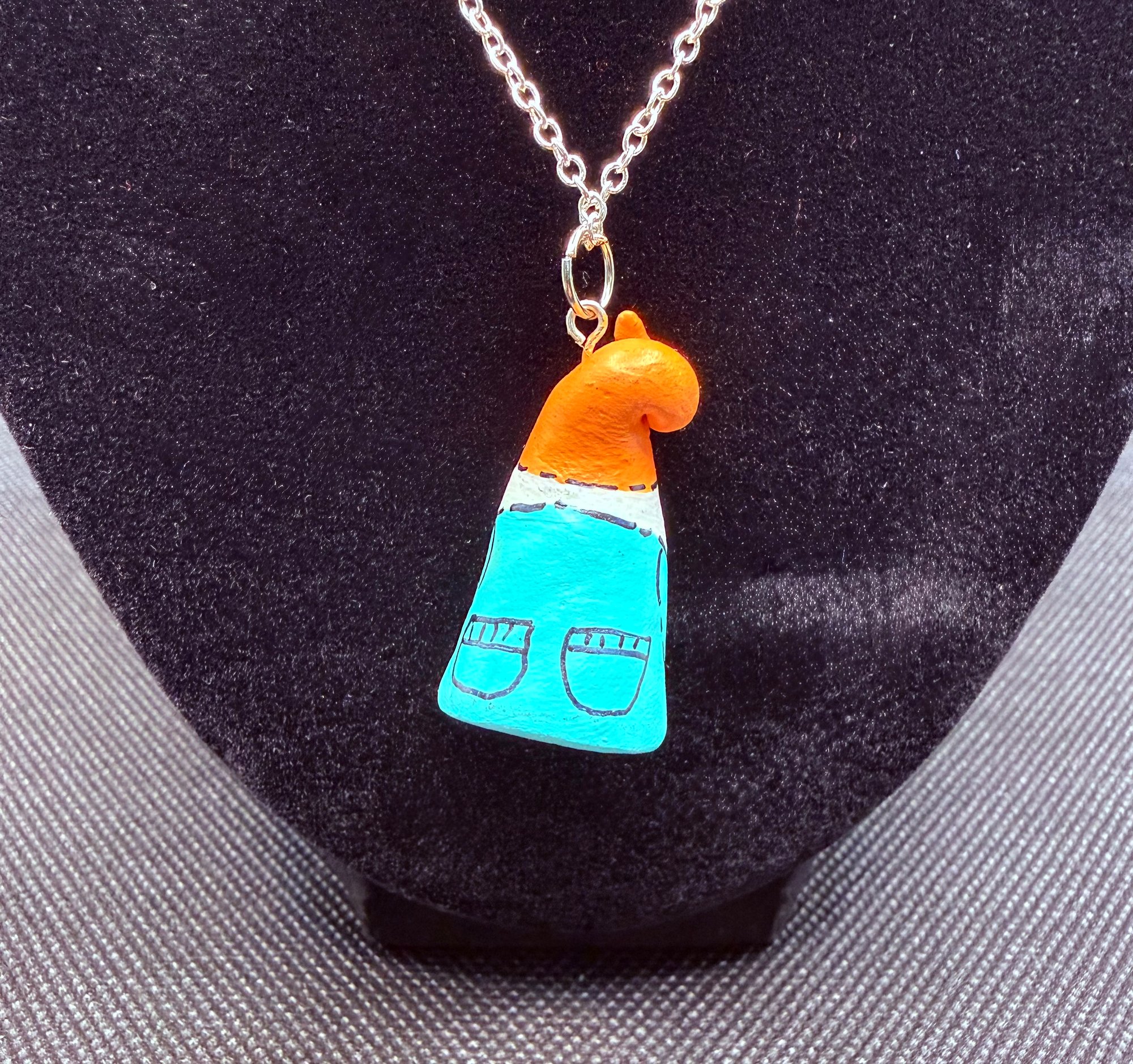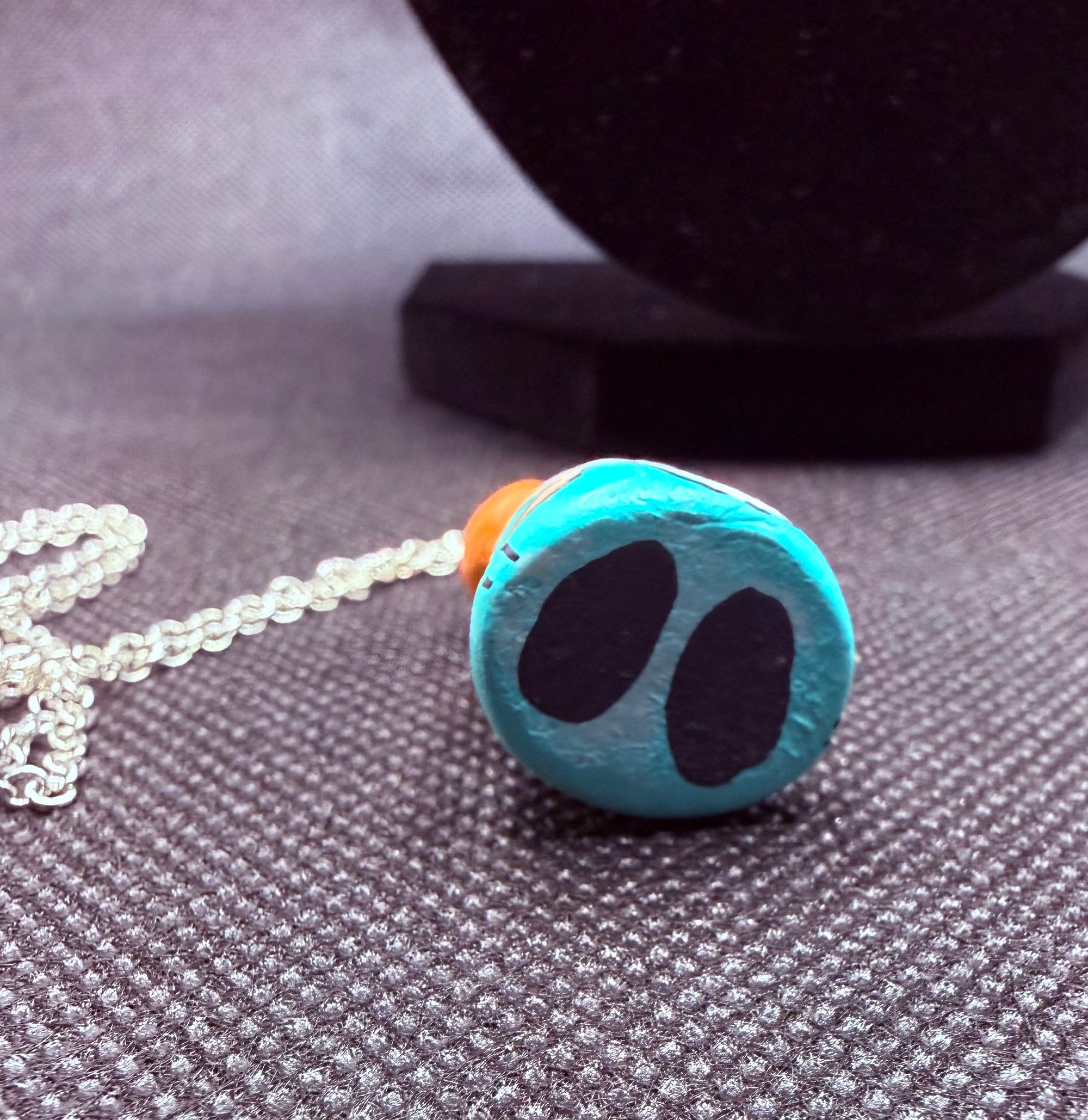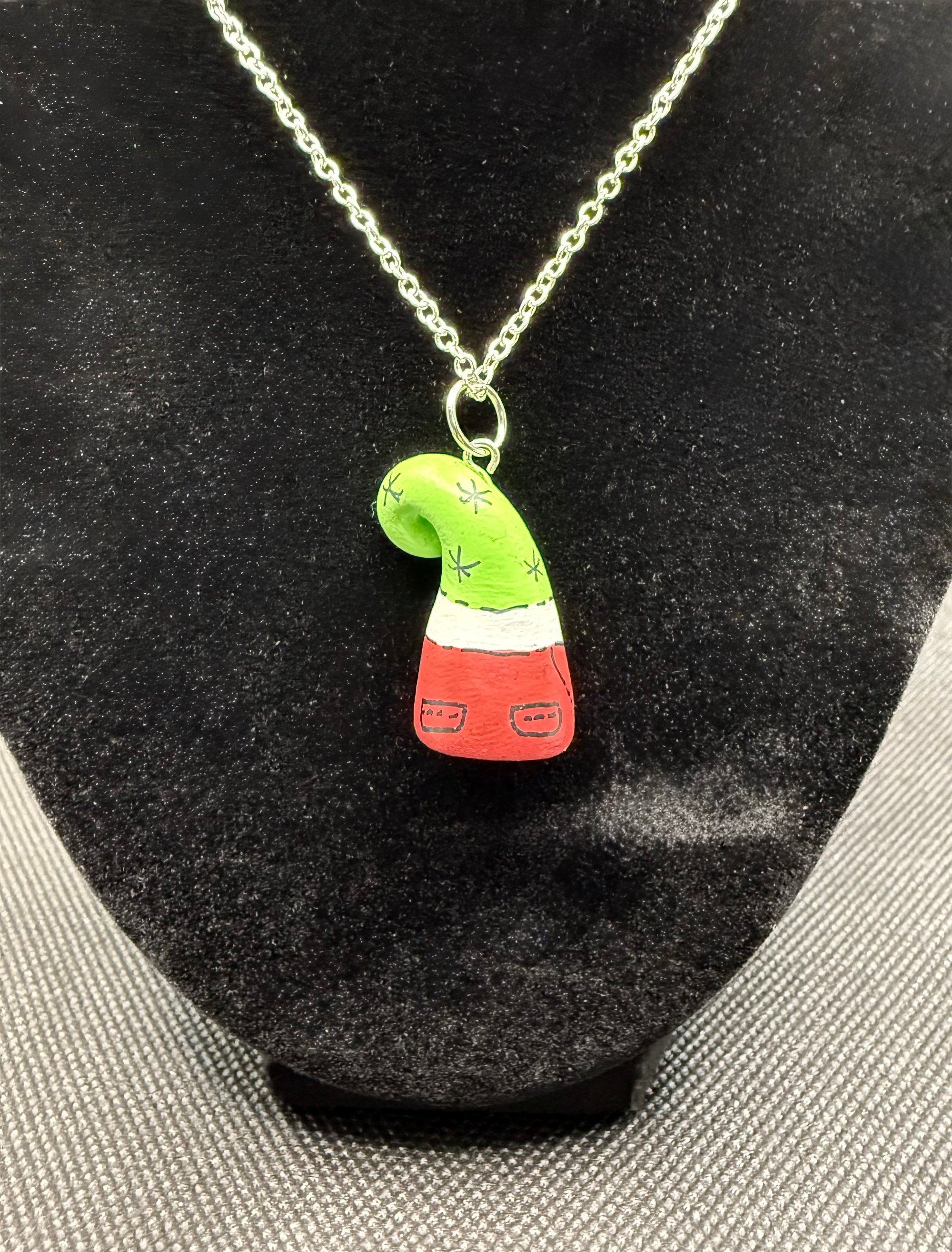 These charming gnome necklaces are a nostalgic throwback! I discovered them while organizing my studio. Each necklace is hand-sculpted from paper clay and hand-painted. They’re whimsically hung from a 22” sterling silver chain. I crafted these necklaces during my early days in the Work of Whimsy studio, and I thought it would be a fun addition to my collection to offer them for purchase. You’ll never be alone with one of these little guys!