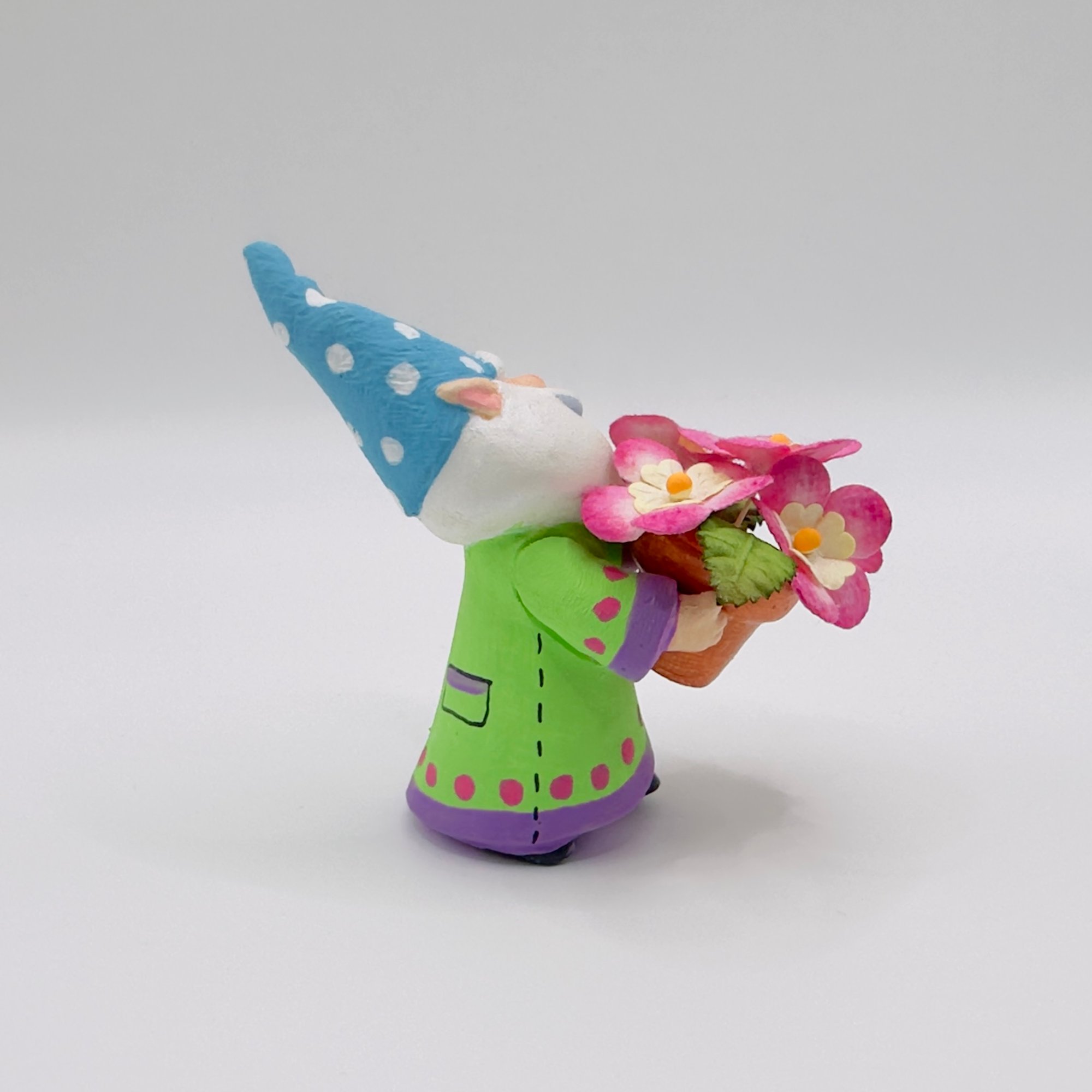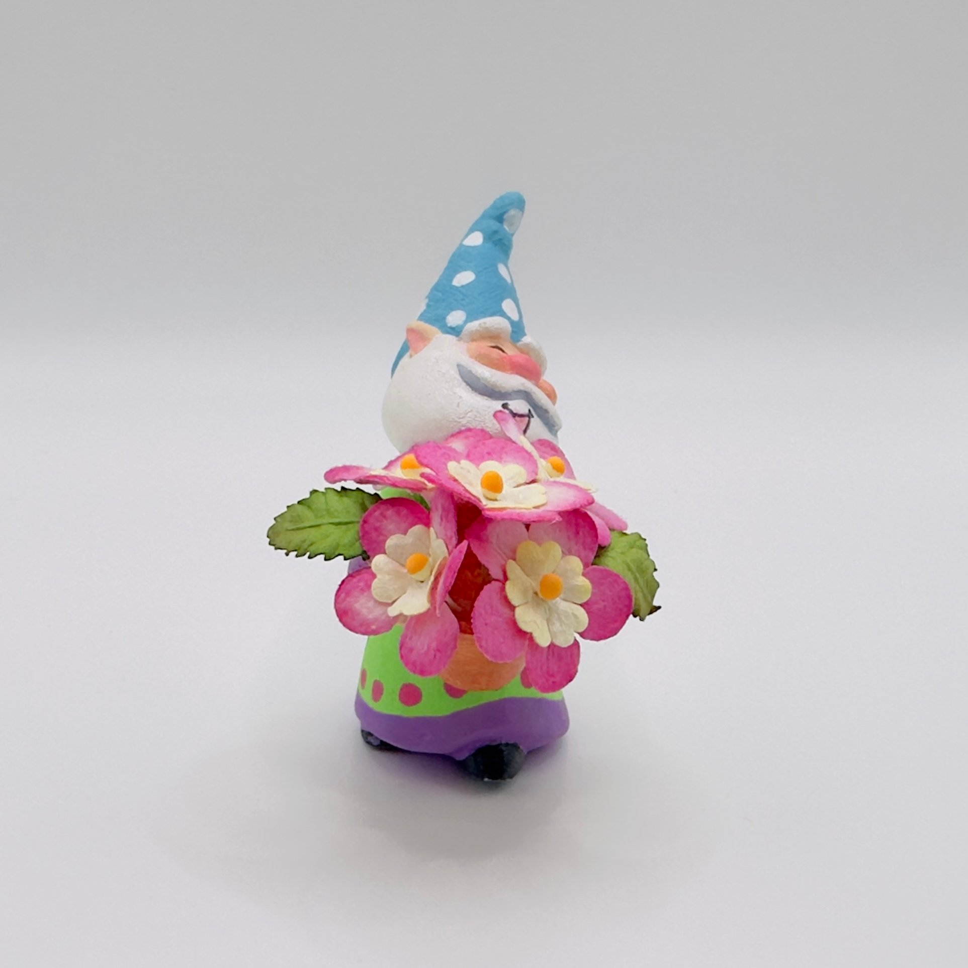 Meet Peter, the delightful delivery gnome who’s bringing you a bouquet of flowers!