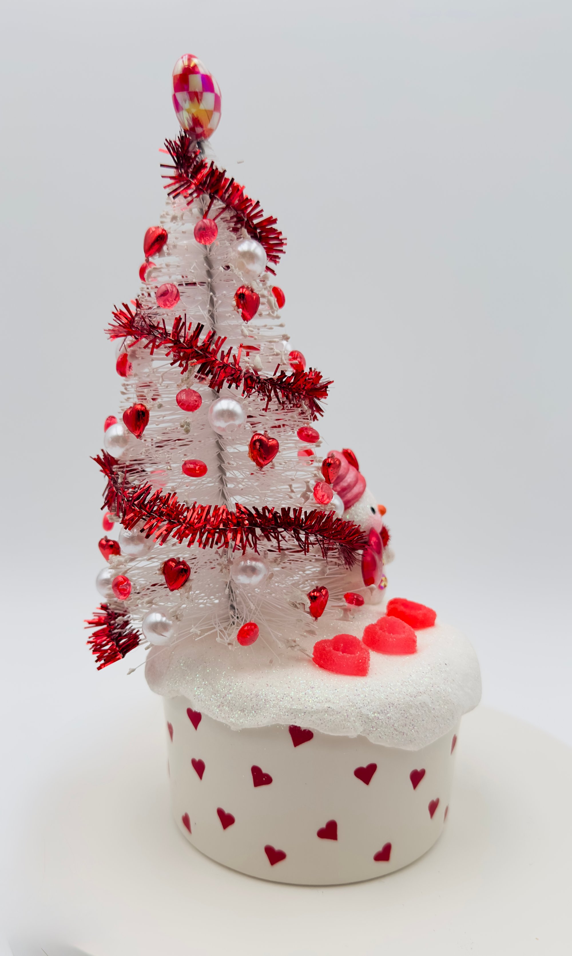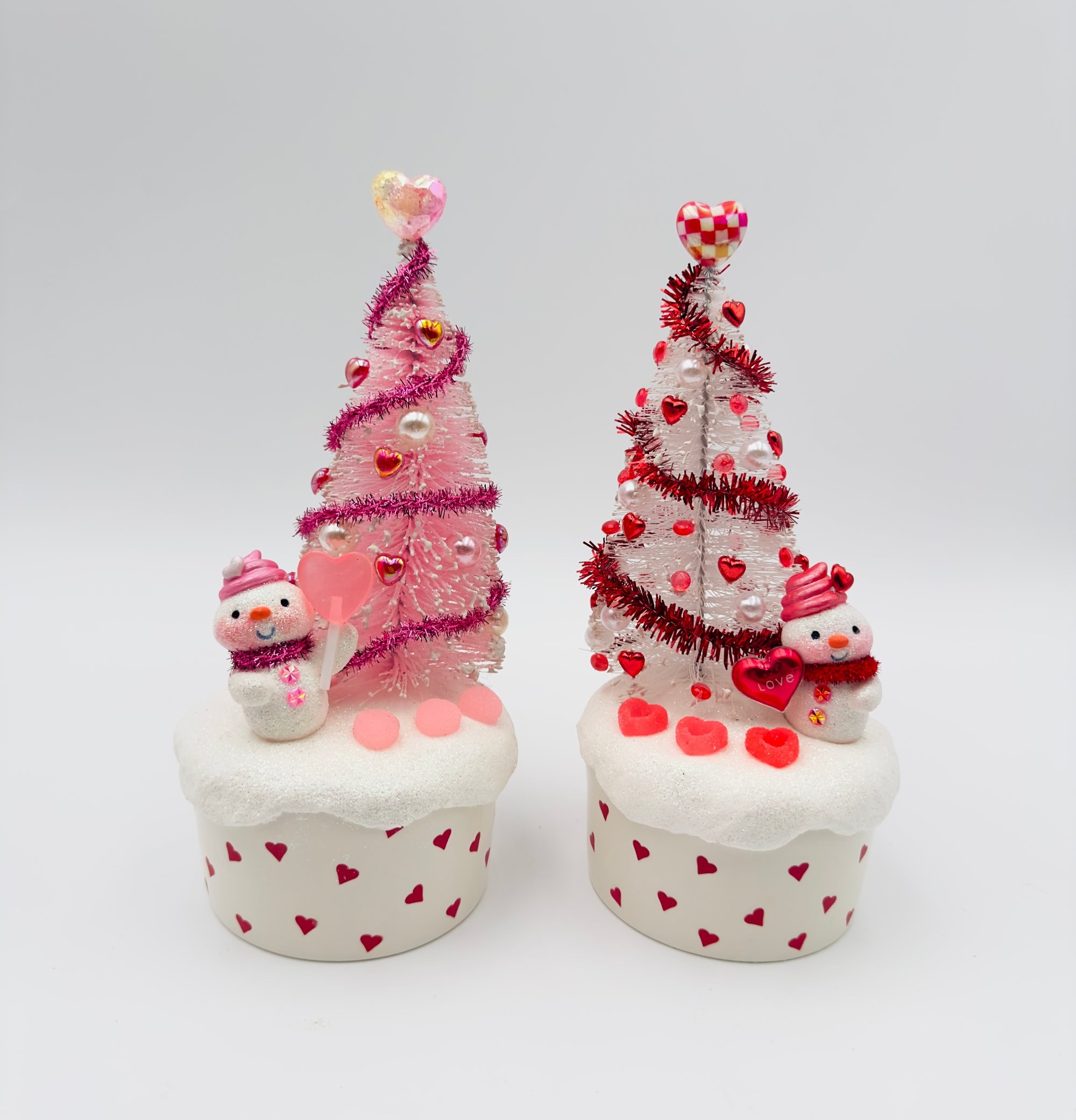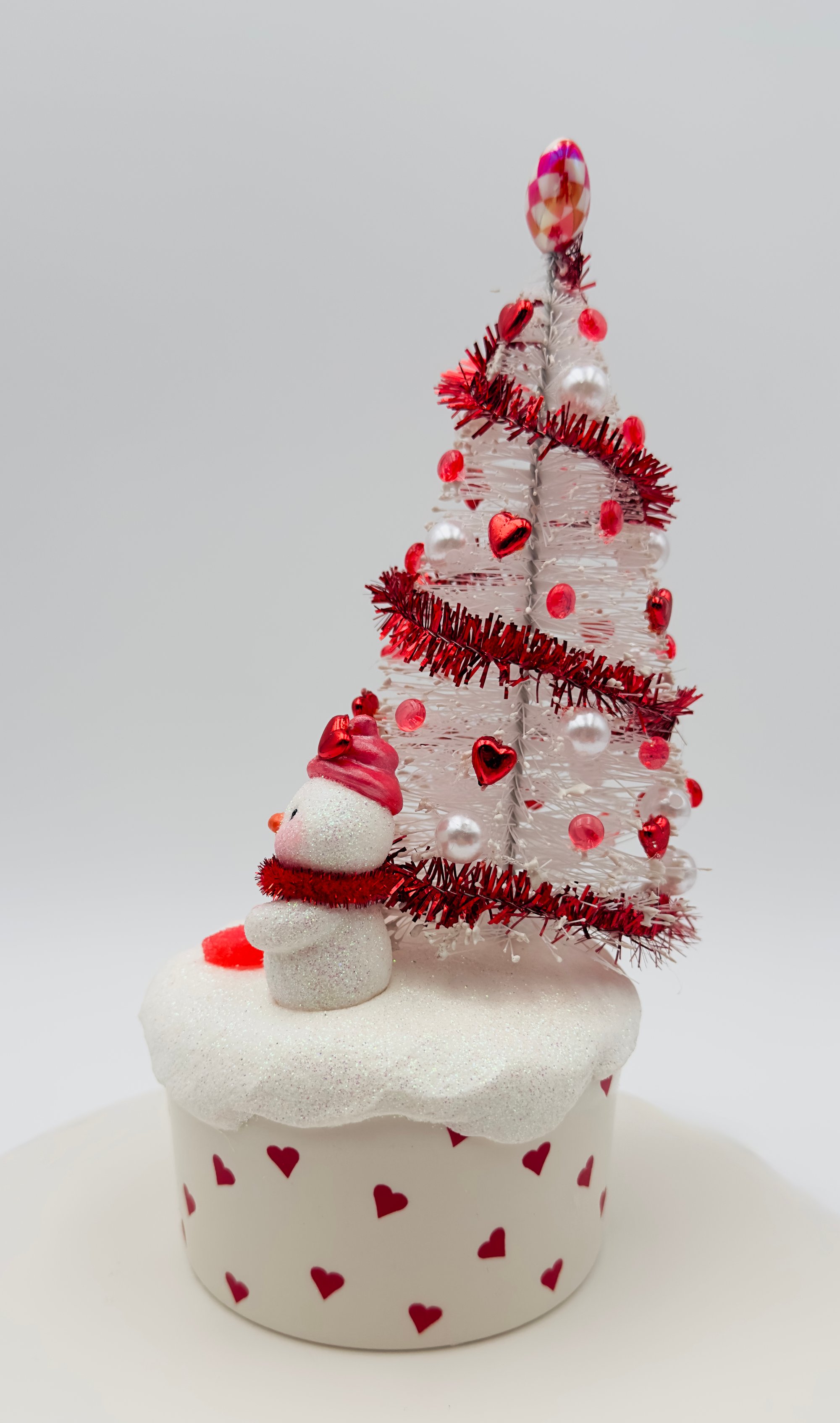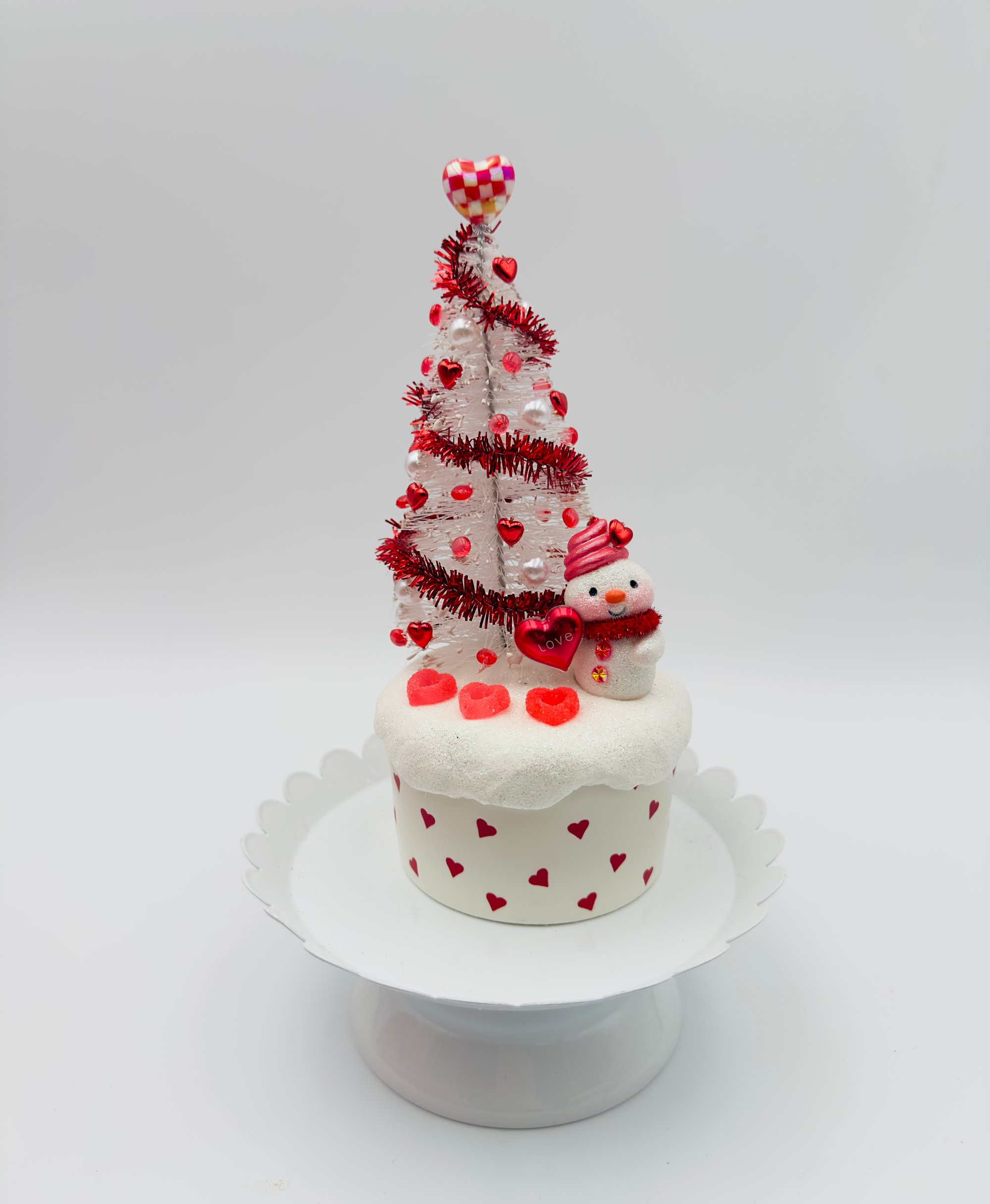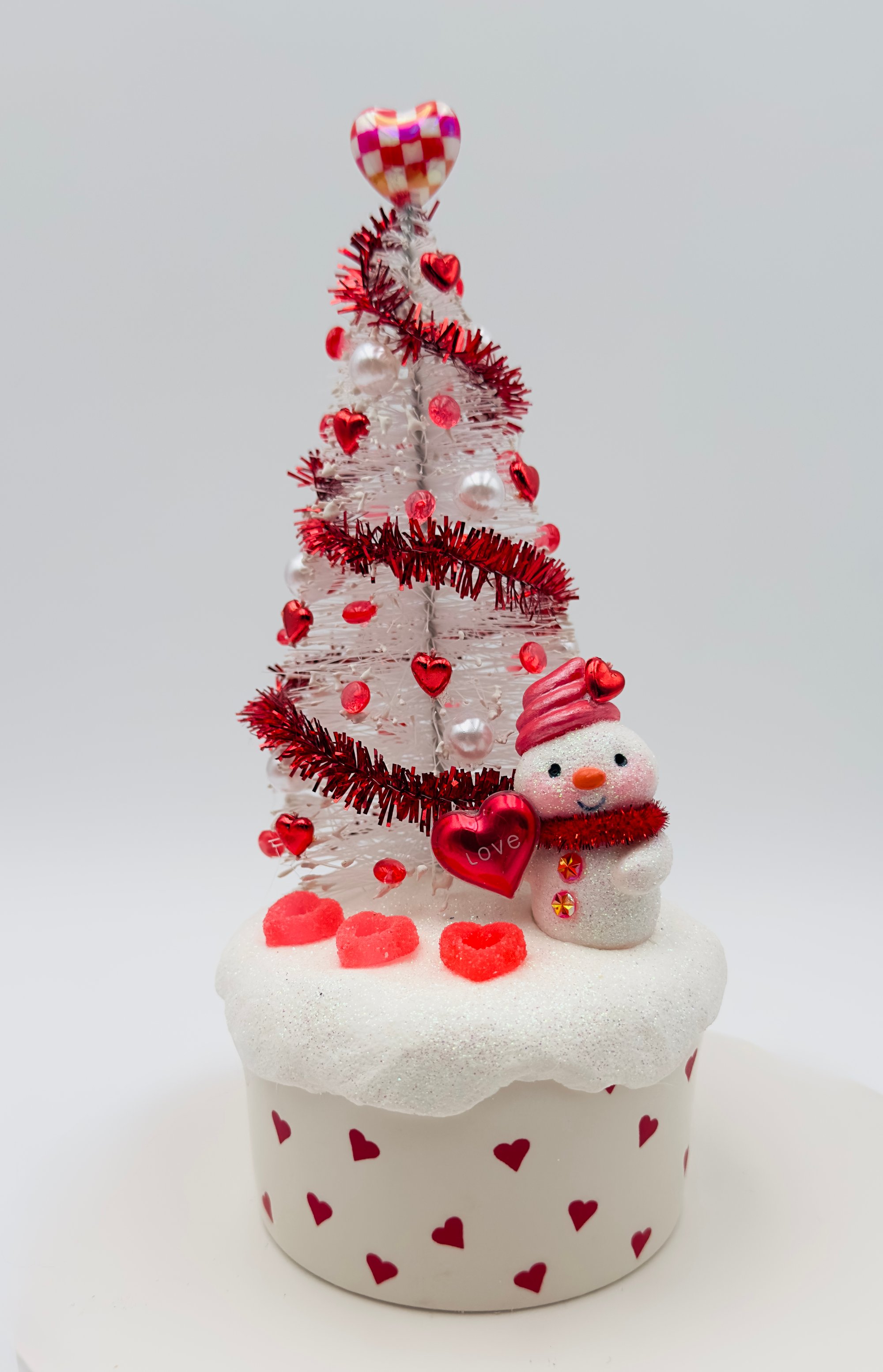 These delightful Valentine’s Day decor pieces showcase a charming snowman, adorned with a Valentine tree, ready to celebrate the holiday. This centerpiece would be an ideal addition to your Valentine’s Day decor.