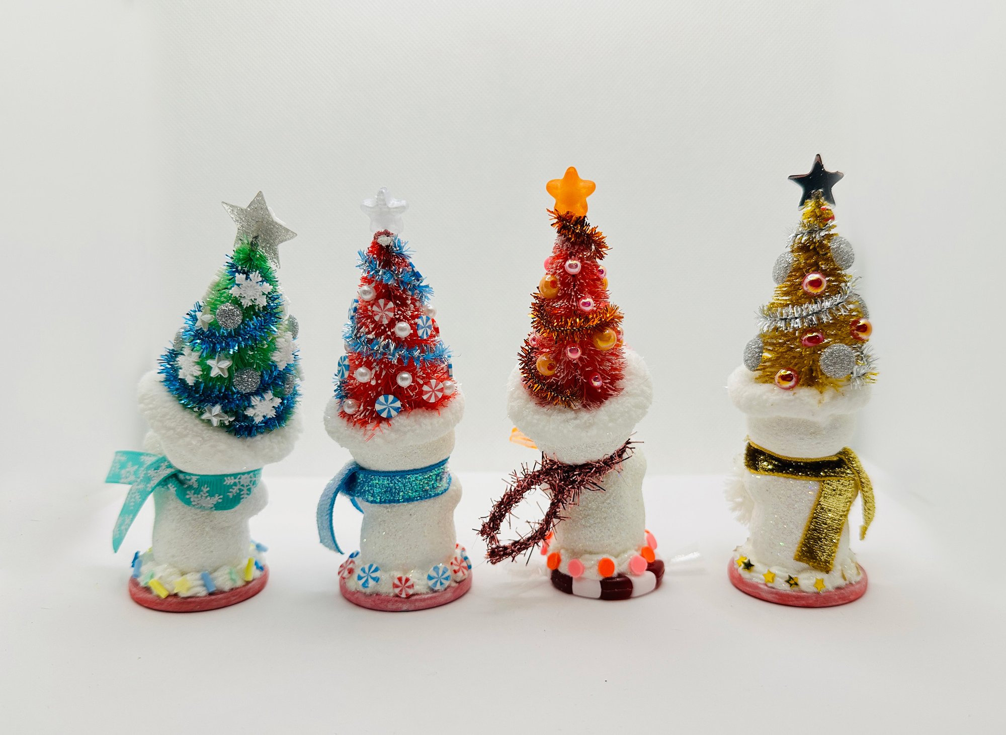 These charming snow people, dressed in their whimsical Christmas tree hats, are all set to get into the holiday spirit! Their unique personalities are reflected in their bright smiles and the decorations on their hats, making them the perfect Christmas gift for friends and family, or anyone who loves snowmen! Each snowman is one-of-a-kind and created with lots of love and glitter! No others will be made that are exactly the same!