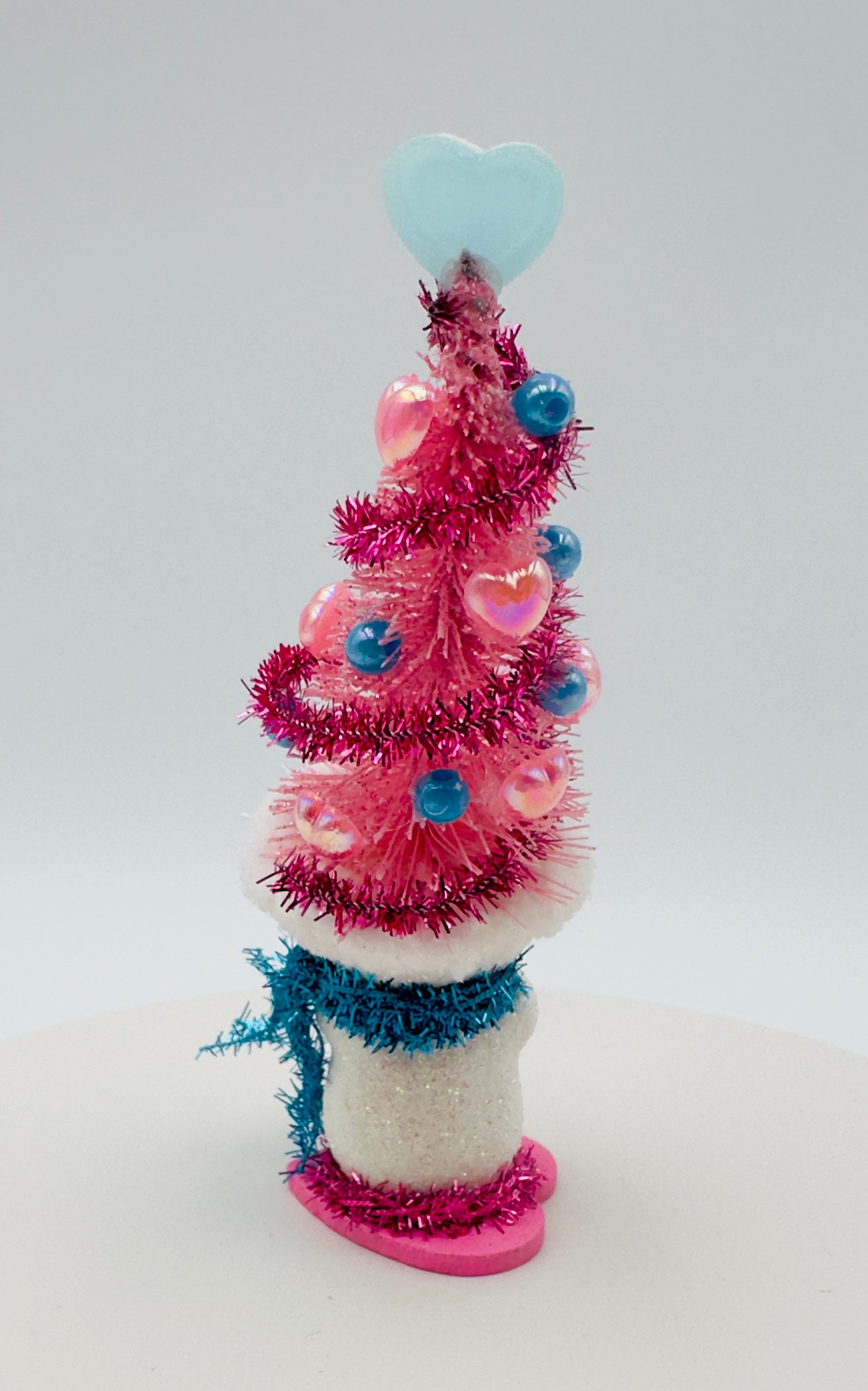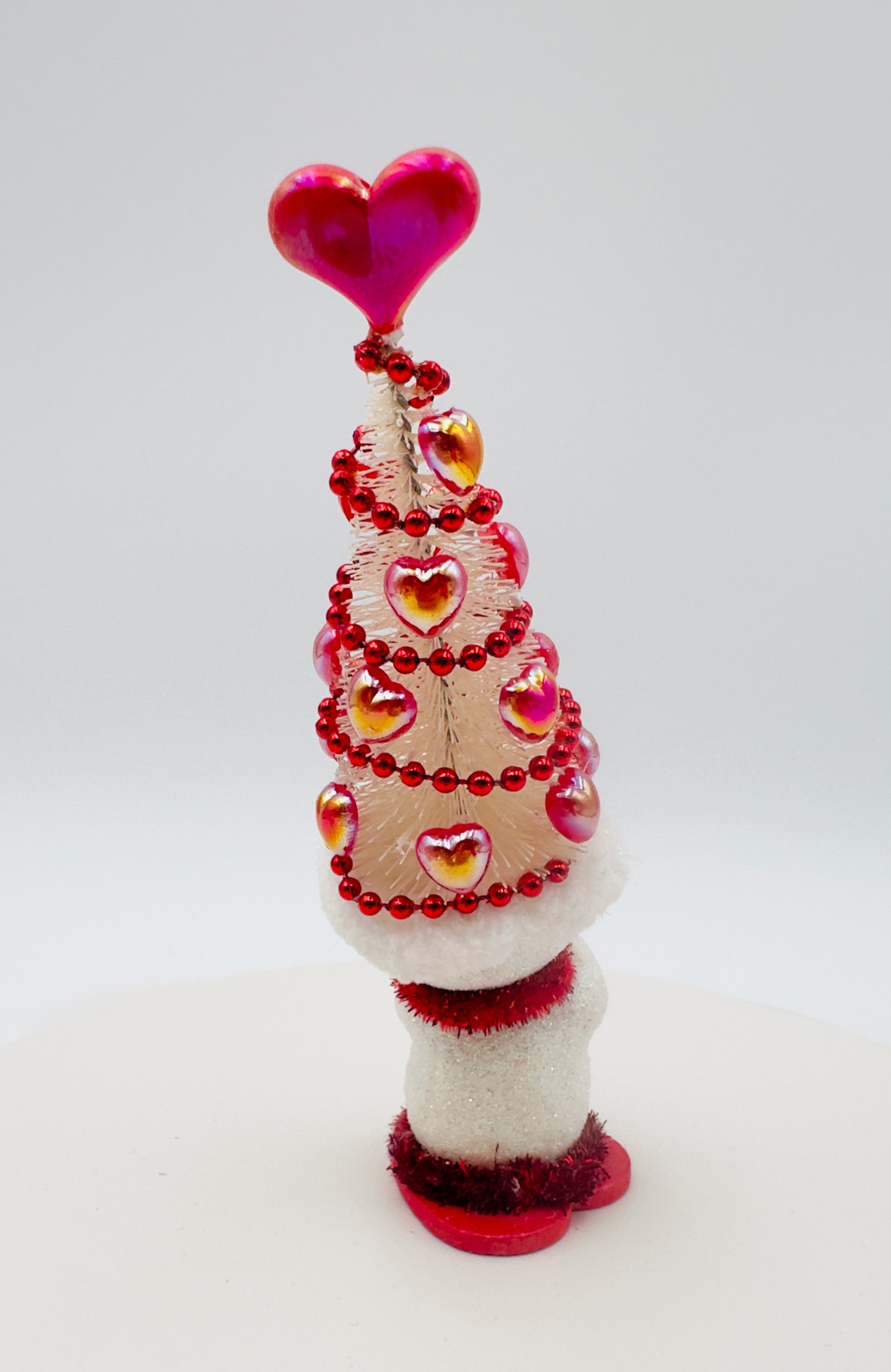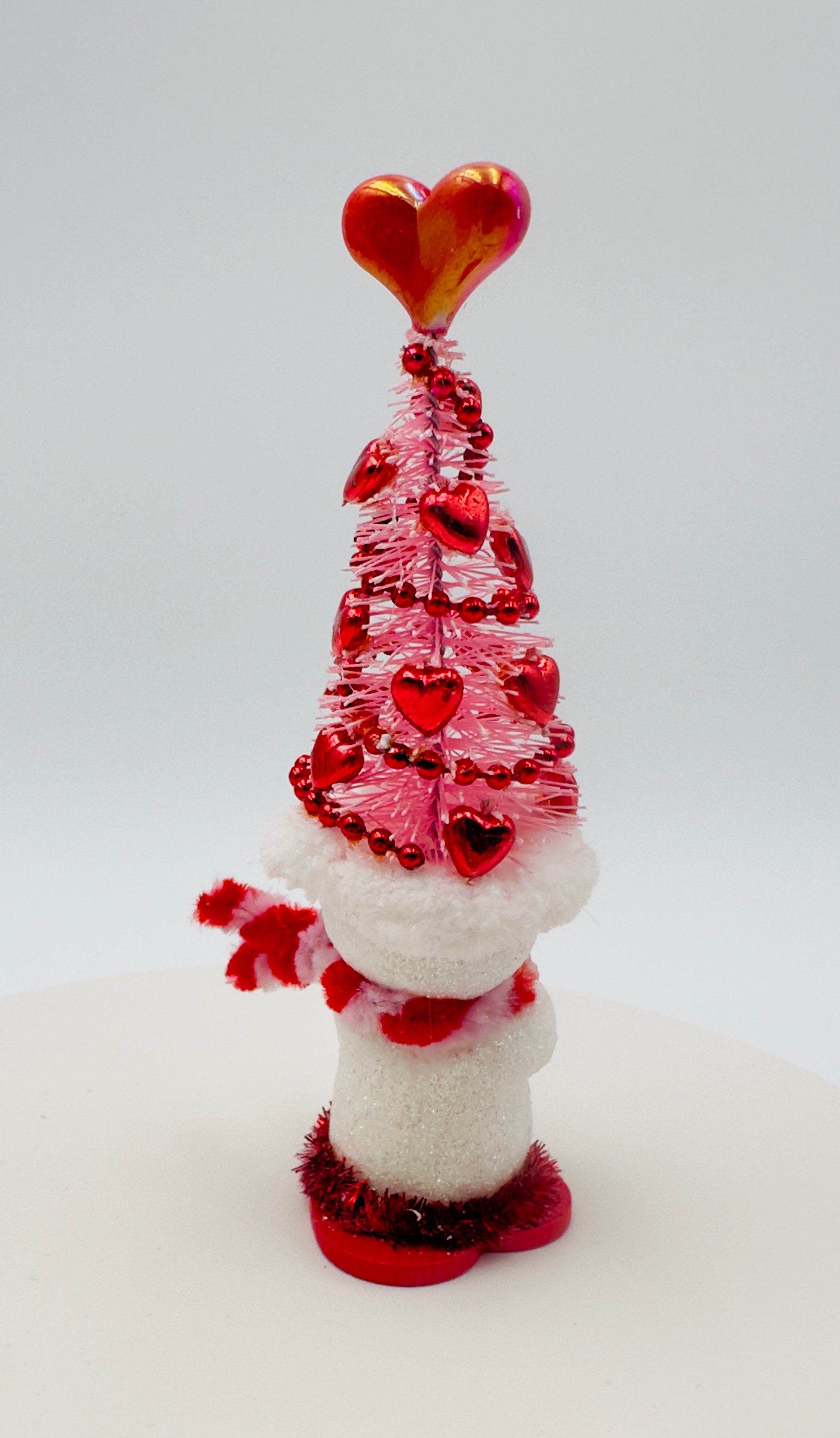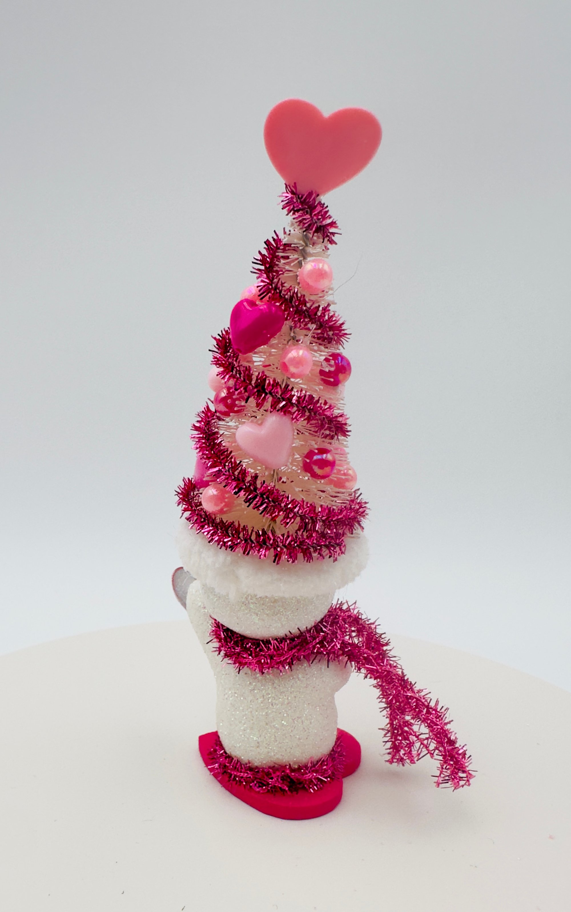 These charming snow people, dressed in their whimsical Valentine's Day tree hats, are all set to celebrate love! Their unique personalities are reflected in their bright smiles and the decorations on their hats, making them the perfect gift for friends and family, or anyone who loves snowmen! Each snowman is one-of-a-kind and created with lots of love and glitter! No others will be made that are exactly the same!